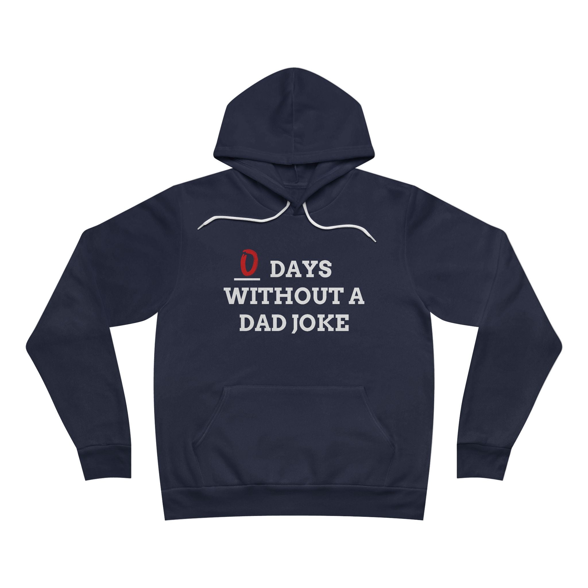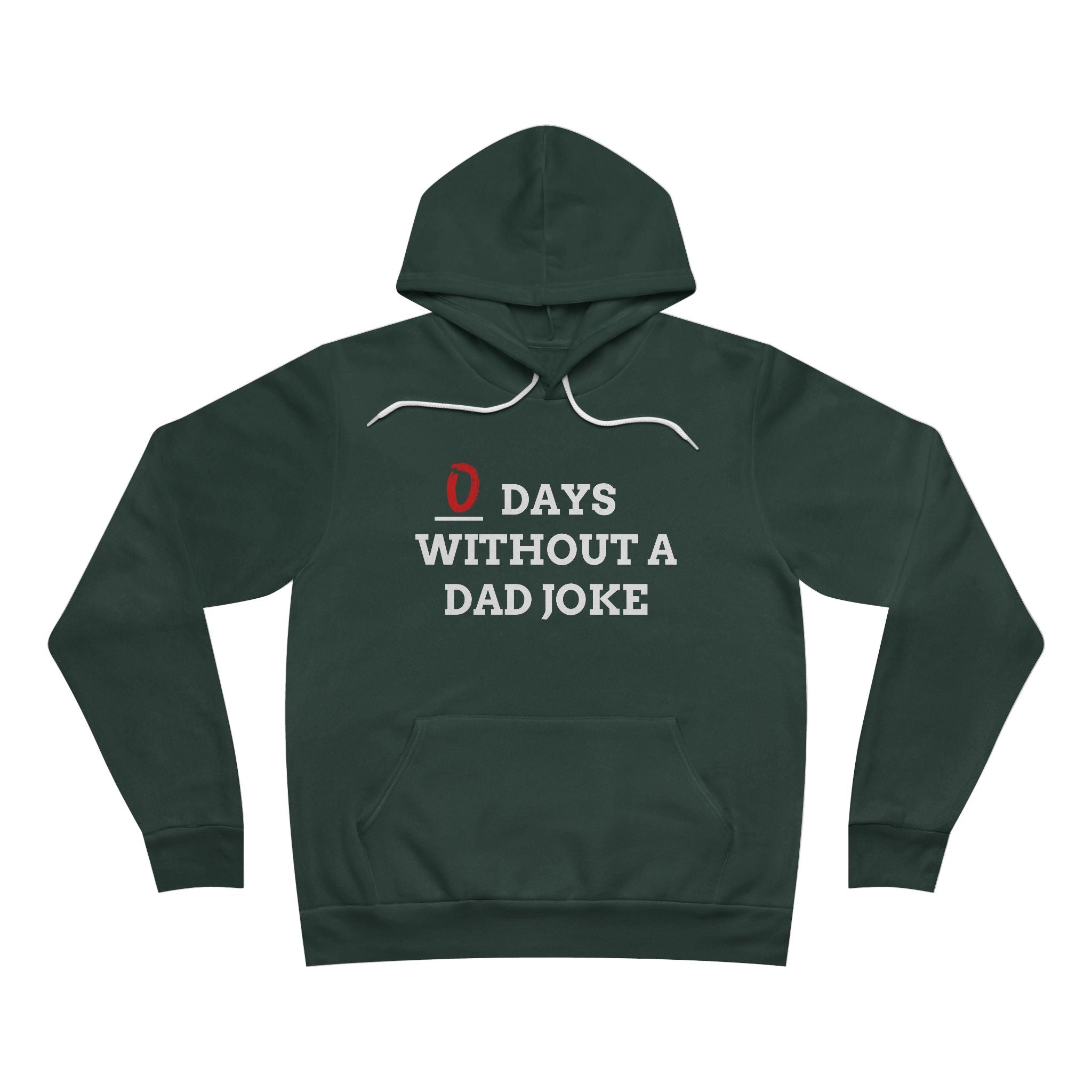 This soft sponge fleece pullover hoodie carries a wink and a laugh on its chest: a bold “0” in red followed by “DAYS WITHOUT A DAD JOKE” in crisp white type. It’s built for everyday wear — medium-weight fleece, a roomy kangaroo pocket for cold hands or a phone, and an adjustable hood with classic drawstrings. The retail fit and ribbed cuffs/waistband keep the shape while staying comfortable through relaxed weekends, backyard barbecues, and family hangouts. Wear it when you’re the one delivering groan-worthy puns or when you want to celebrate the household comedian. The black face makes the print pop, and the sewn-in label and reliable construction mean this hoodie will keep earning laughs wash after wash.