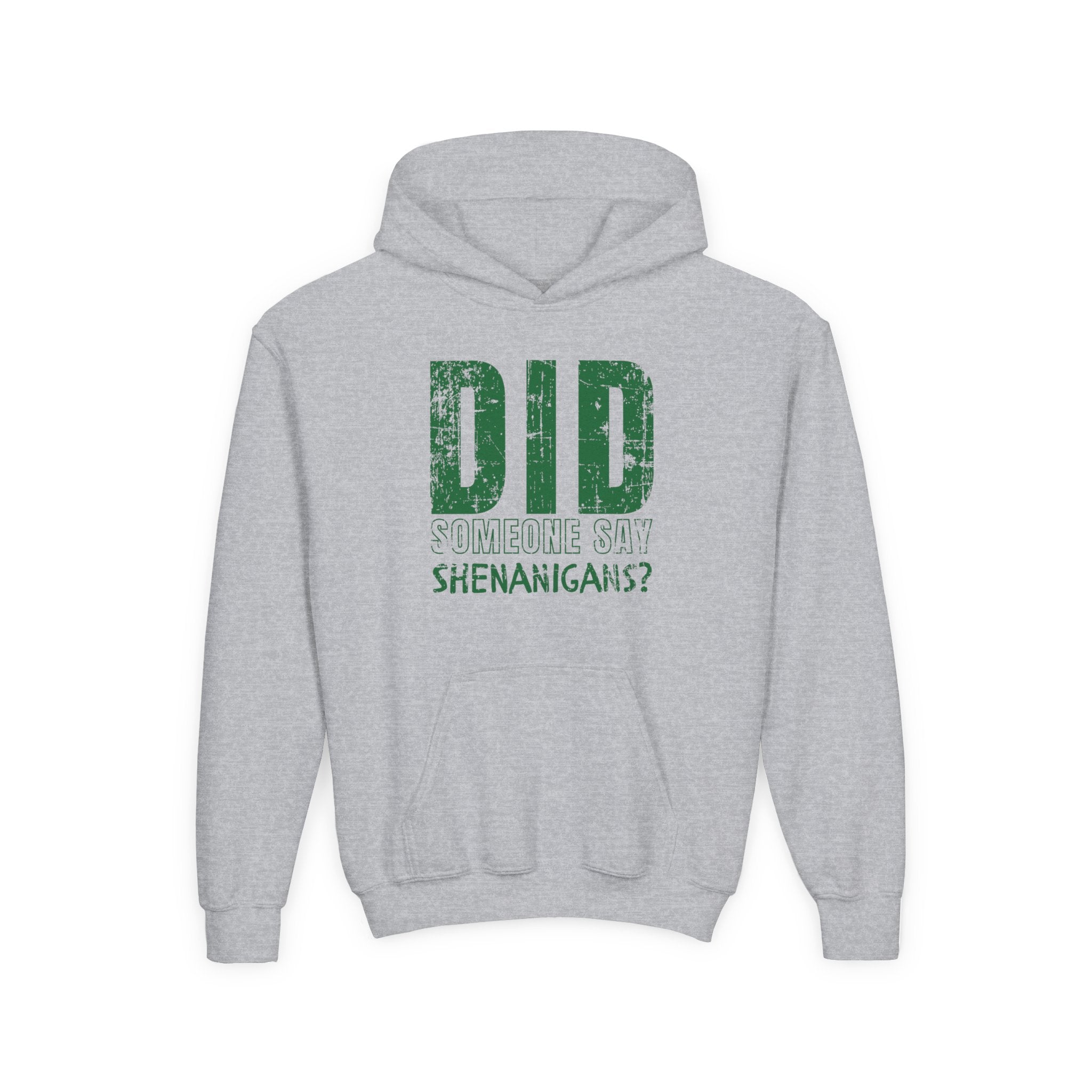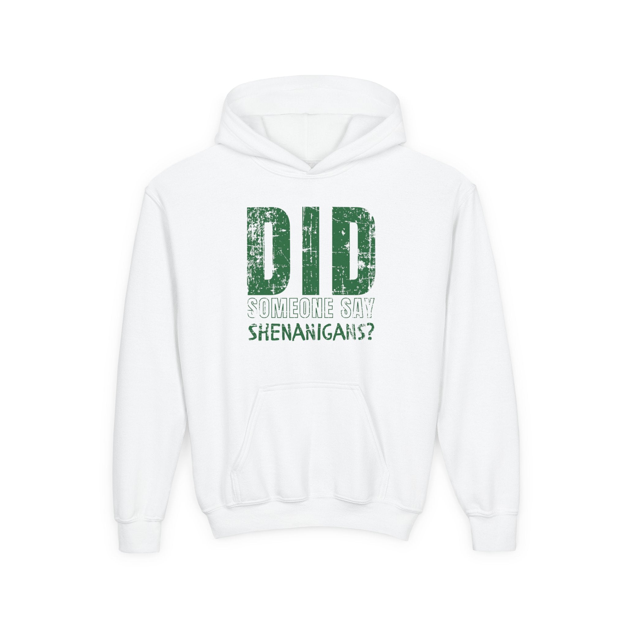 Soft, cozy, and ready for mischief — this youth hoodie wears its attitude on the chest. Bold “DID” lettering leads into the playful line “someone say shenanigans?” in a compact, readable layout that pops on the clean white fabric. The midweight blend keeps kids warm during chilly playtime and the roomy kangaroo pocket holds mittens, small treasures, or busy hands. Thoughtful details like twill necktape and a sewn-in label keep comfort high and irritation low. Durable prints and optional left- or center-chest embroidery mean it stands up to rough-and-tumble days while still looking cheeky and fun. Meets safety and compliance standards for little ones and runs true to size for easy ordering.