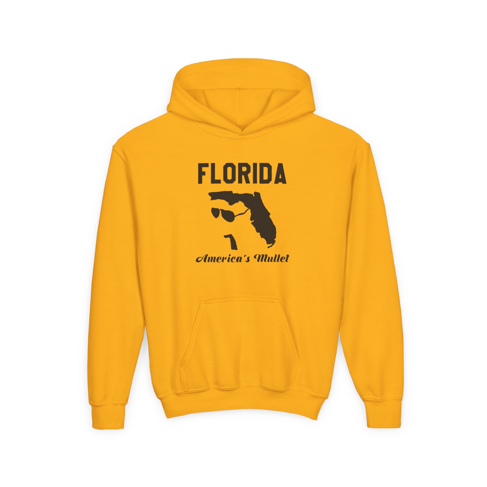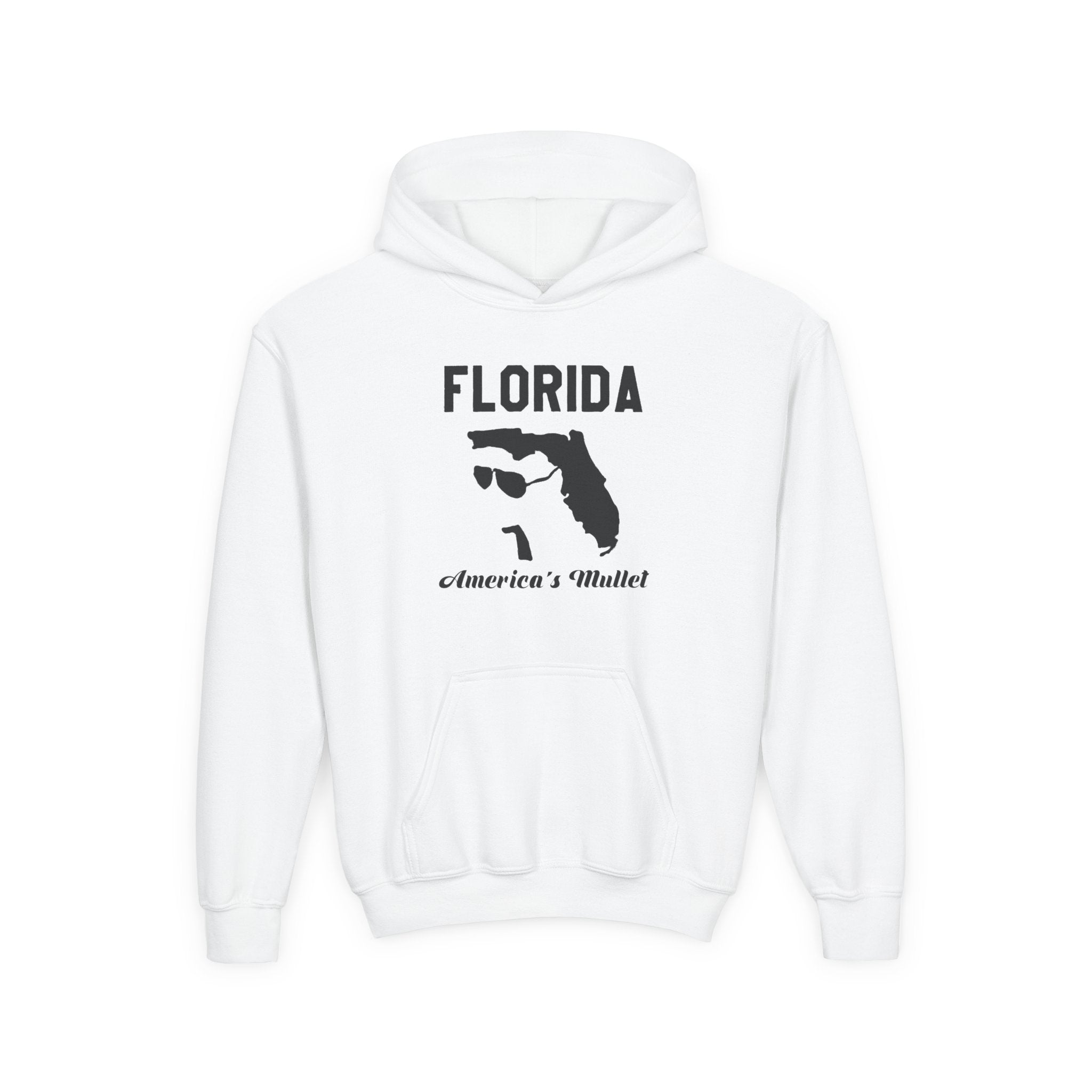 Soft, midweight hoodie made for kids who want a bit of attitude and a lot of comfort. The white fleece provides a clean backdrop for the bold black graphic — a playful outline of Florida paired with retro shades and the tongue-in-cheek phrase across the chest. The roomy kangaroo pouch keeps little hands warm and holds snacks or treasures from the playground. Durable blended fibers and reinforced neck tape mean this hoodie stands up to active days, while optional chest embroidery adds a subtle, long-lasting detail. It wears like a favorite: cozy, casual, and ready for weekend drives, family trips, or relaxed afternoons at the park.
