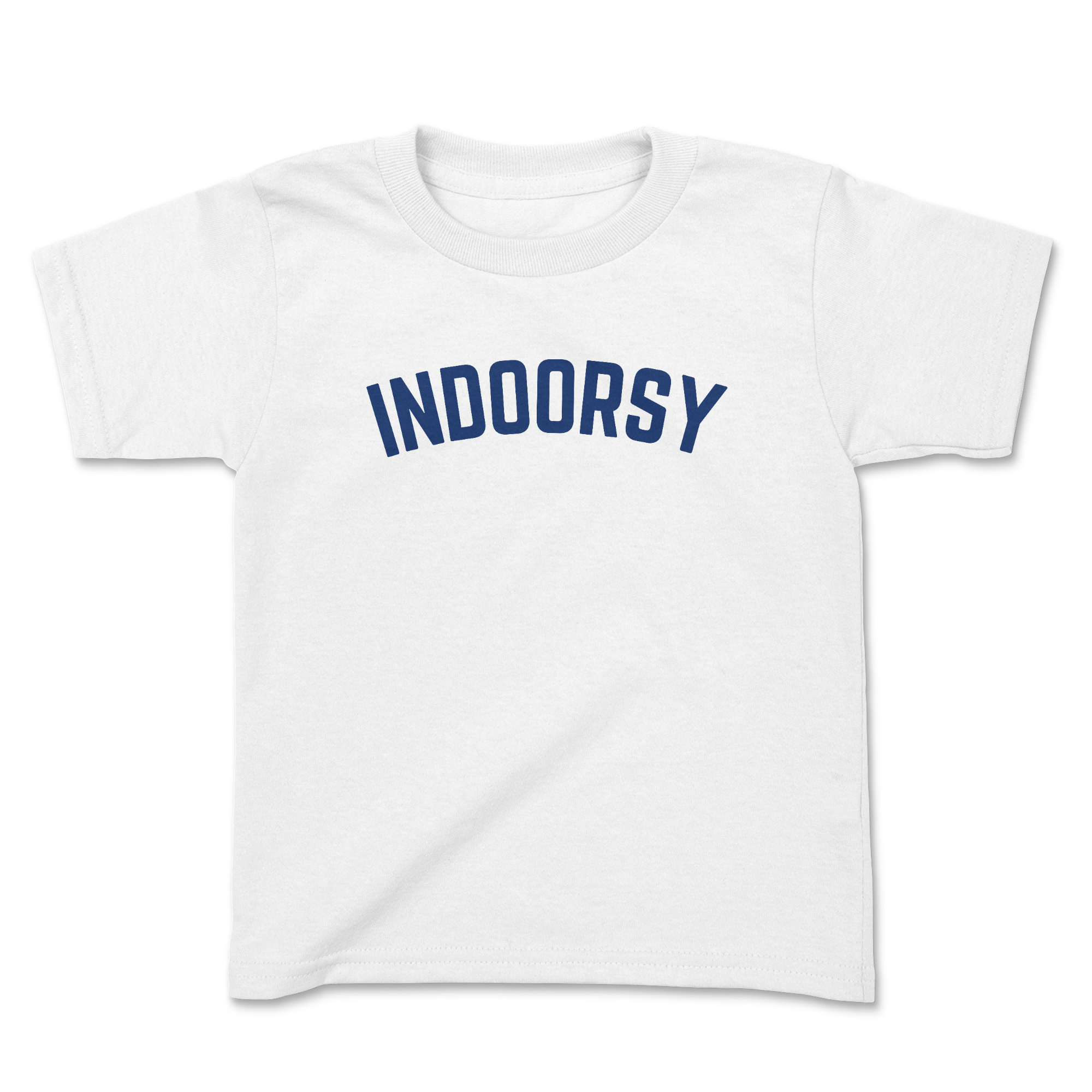 Soft, simple, and quietly playful — this toddler tee wears like a little hug. Lightweight combed cotton keeps busy days breathable, while ribbed collar and shoulder tape hold up to repeated wear and washing. The small, arched wordmark adds a touch of grown-up humor on a kid-sized shirt, making it easy to layer under a cardigan or scoop a sweater over for cooler mornings. It lives in everyday routines: storytime on the couch, puddle-stomping with rainboots, or sleepy snuggles before bed. The clean white background lets the navy lettering pop without overwhelming, so it fits right into a pared-down, functional wardrobe that parents reach for again and again.