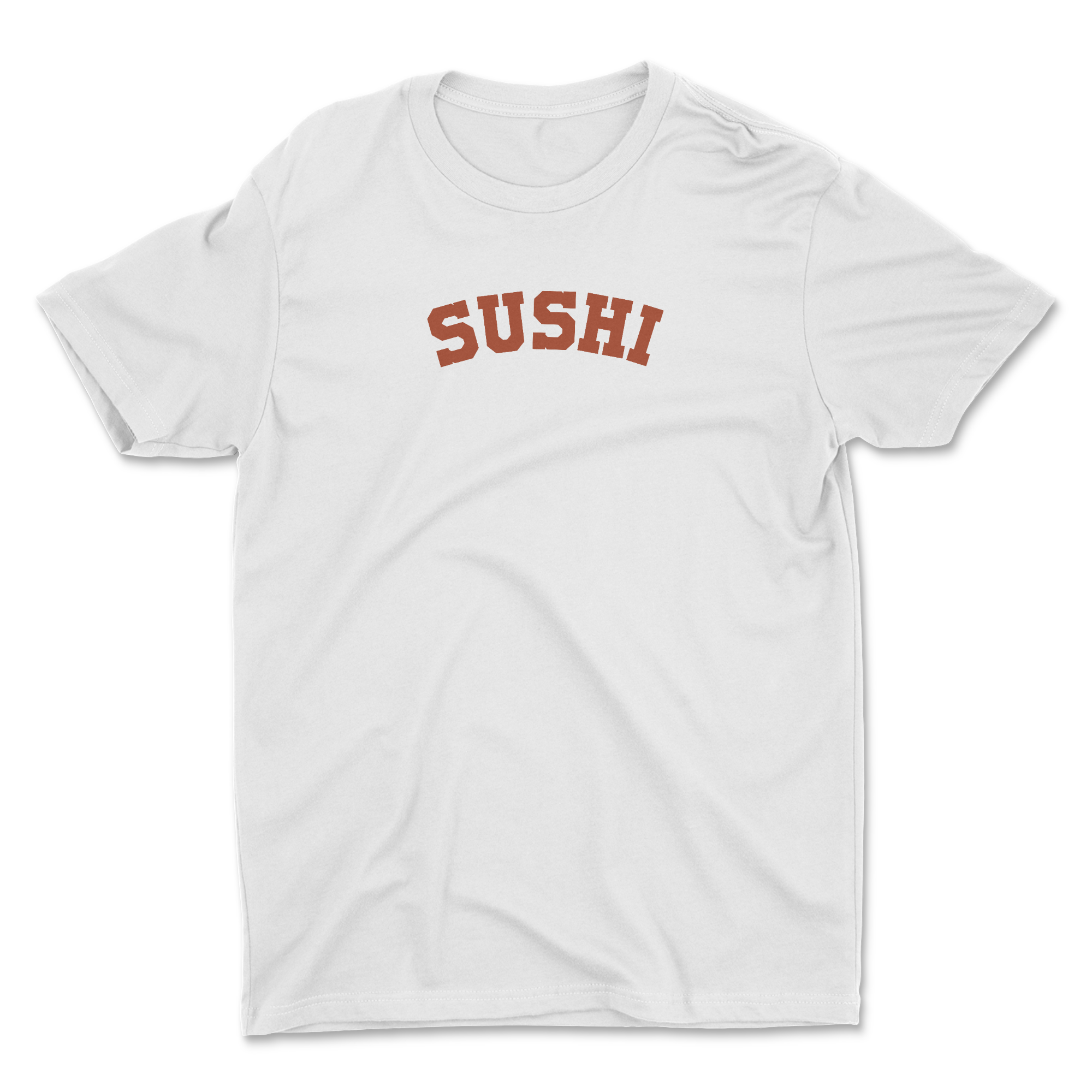 This lightweight cotton crew blends everyday comfort with quiet, food‑loving personality. The simple arched “SUSHI” script sits across the chest in a warm, rustic red—subtle enough to layer, bold enough to start conversations. Wear it to weekend strolls, ramen runs, or late‑night sushi dates and feel relaxed without losing style. The classic crew neckline and clean silhouette let you dress it up with a blazer or keep it casual with worn-in denim. It’s for people who collect flavors and moments, not labels—those who want a soft, breathable tee that speaks to their taste with an easy, familiar voice.